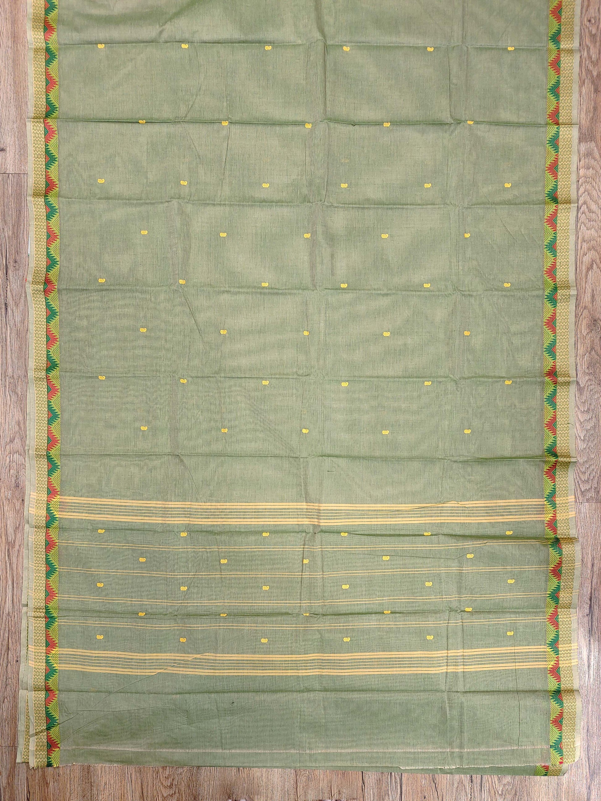 This elegant Kanchi cotton saree in a soothing soft green tone features delicate motifs across the body and a classic border that adds a subtle traditional charm. Crafted from pure cotton, it offers excellent comfort and breathability, making it ideal for formal wear, daytime events, and simple festive gatherings.