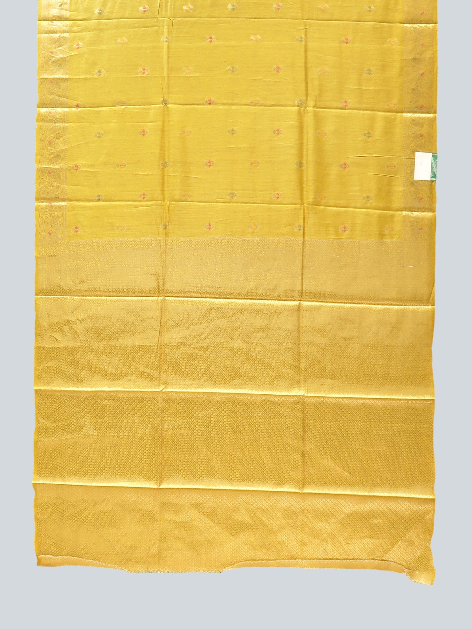This elegant pure Tussar silk saree showcases refined craftsmanship with its rich zari and Meena resham detailing. The body is adorned with delicate zari motifs highlighted with Meena resham work, adding subtle color and texture. The pallu is intricately woven with zari and resham, lending the saree a graceful festive appeal. It comes with a matching brocade blouse piece, perfectly complementing the richness of the saree. Ideal for festive occasions, weddings, and special celebrations.