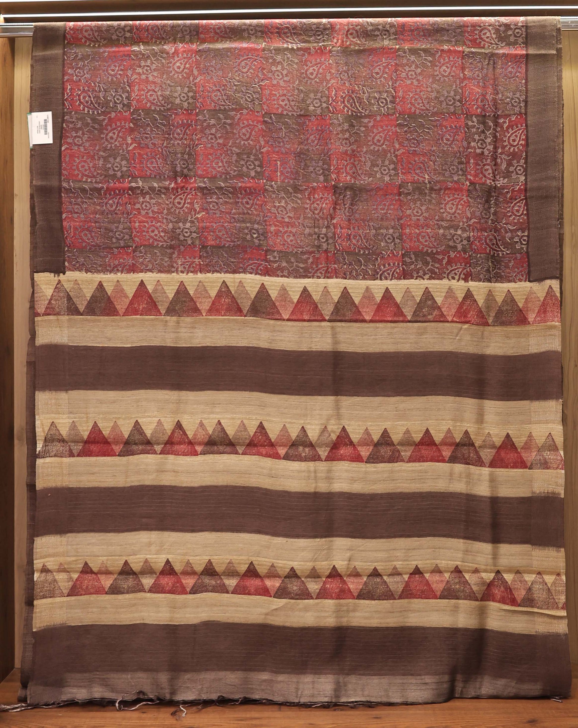 Rust Red Traditional Print Pure Tassar Silk Saree