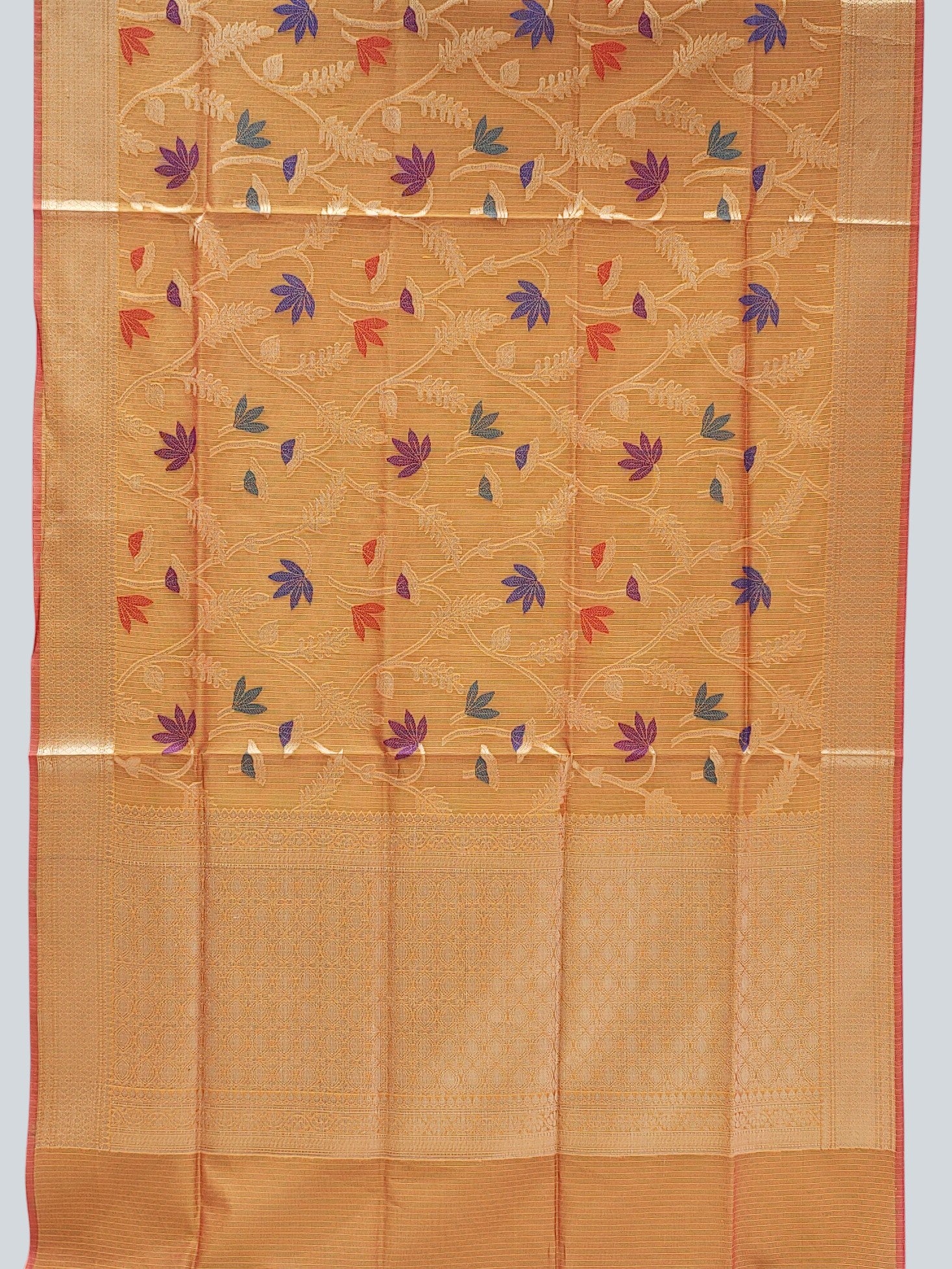 Kona Chandiri Blend Saree with Multicolor Bhooti & Zari Border