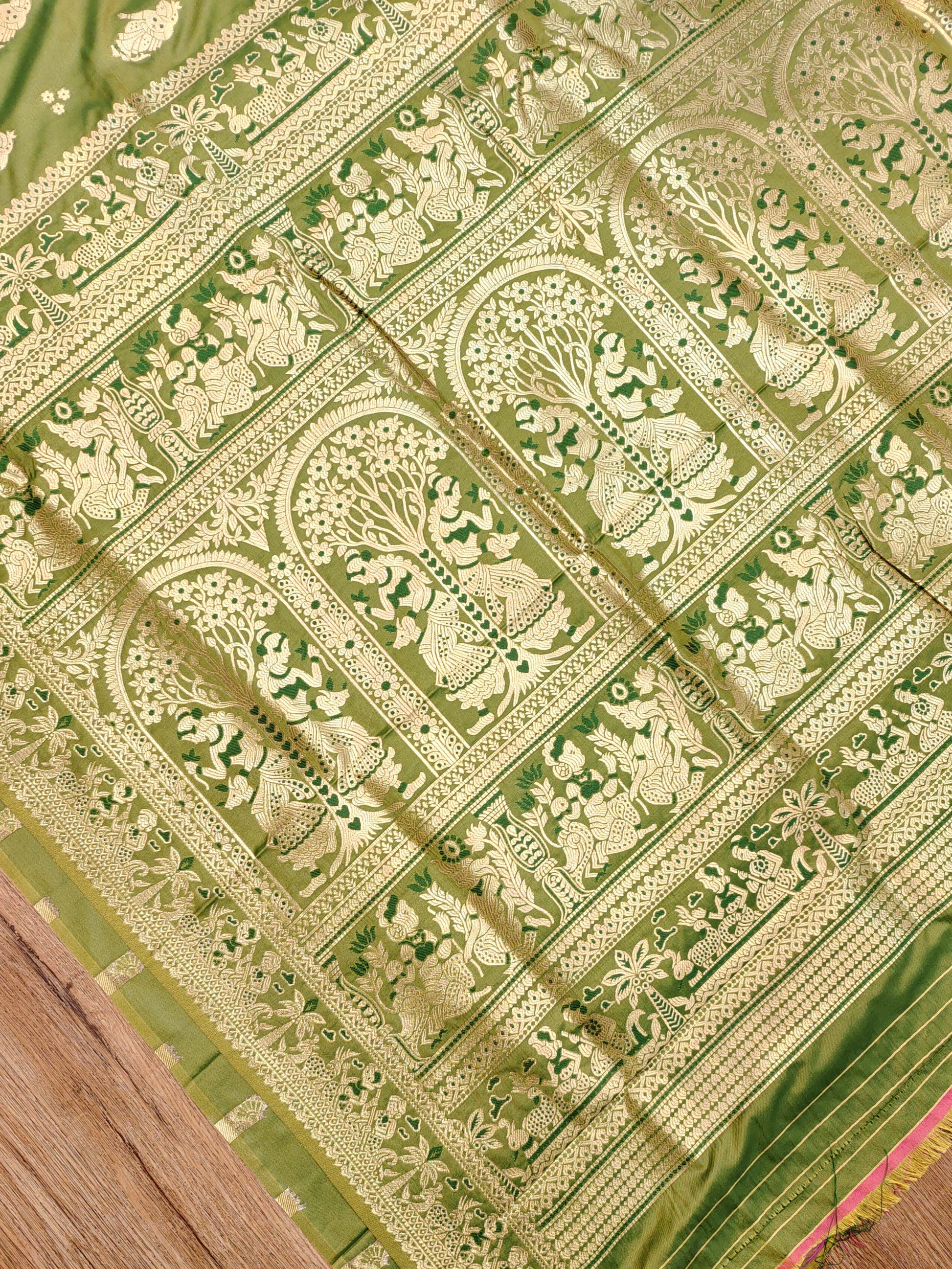 Olive Green Swarnachari Blend Saree