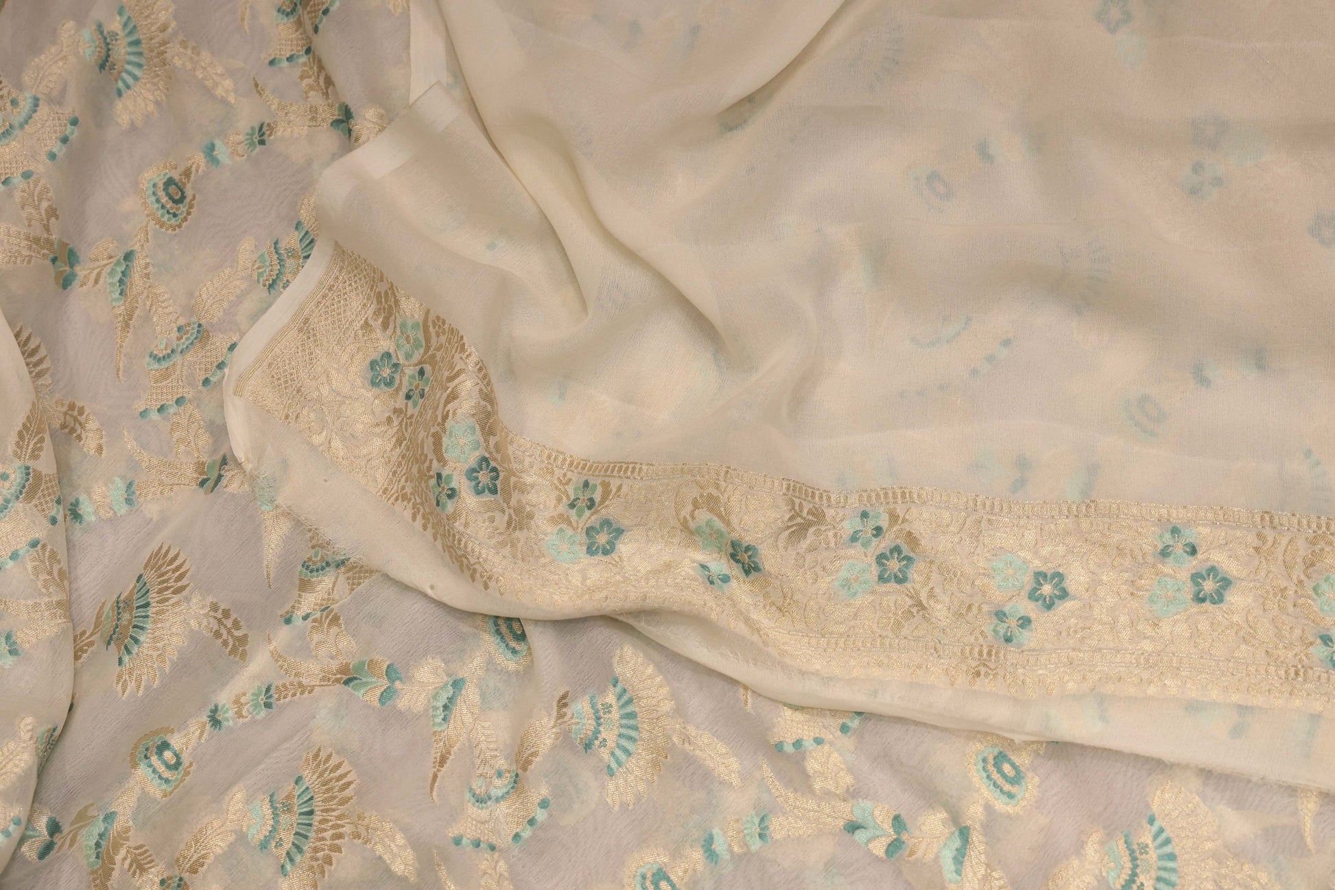 Elegantly hand-woven in Banarasi georgette, this saree showcases subtle traditional motifs with a refined finish. Comfortable and easy to carry, it is perfect for long celebrations and formal gatherings.