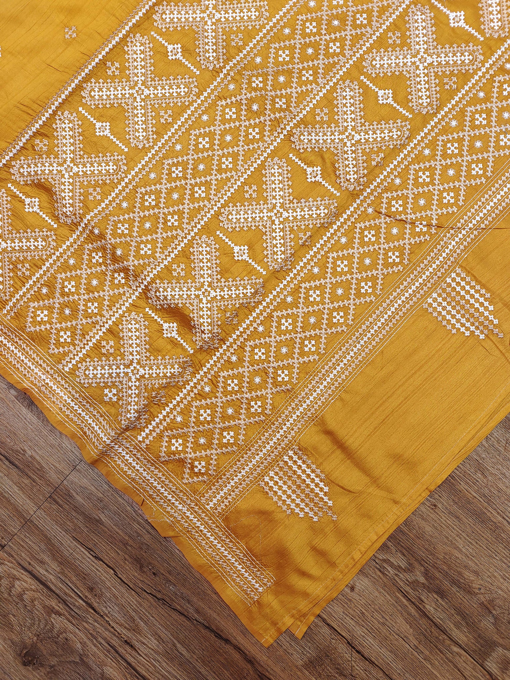 Gujarati Stitch on Blend Tussar Silk