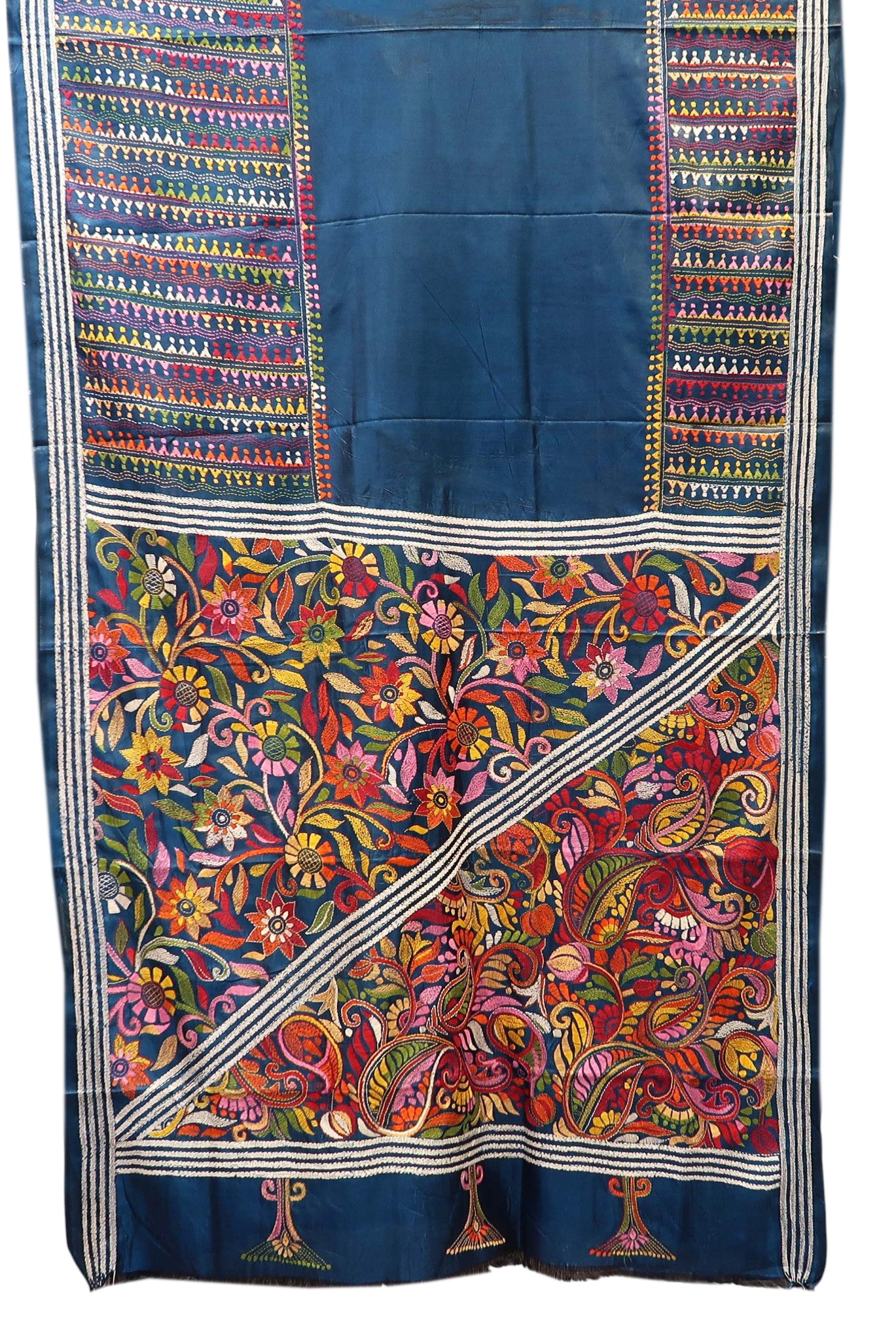 Midnight Blue Kantha Saree with Multicolour Pallu
