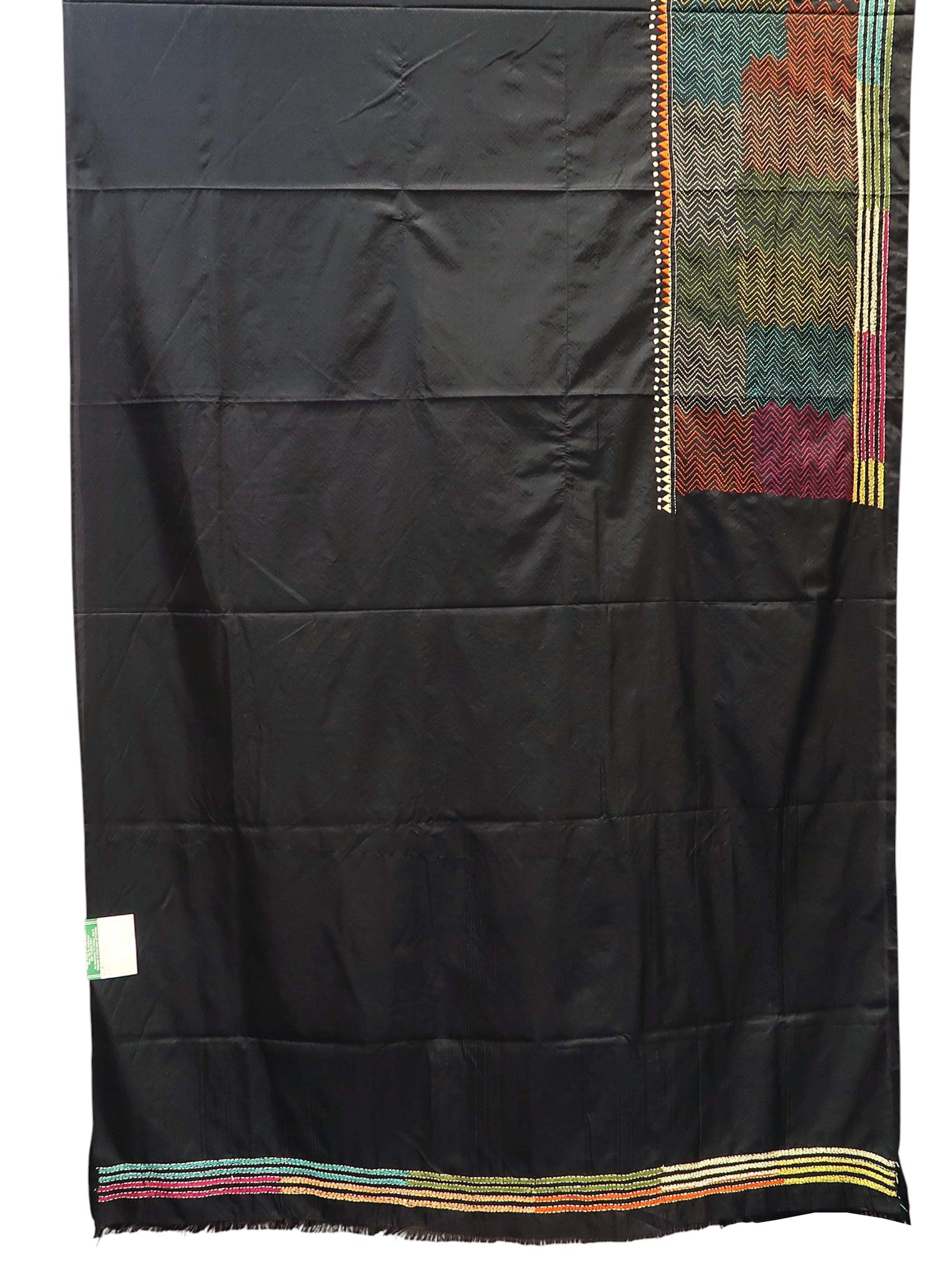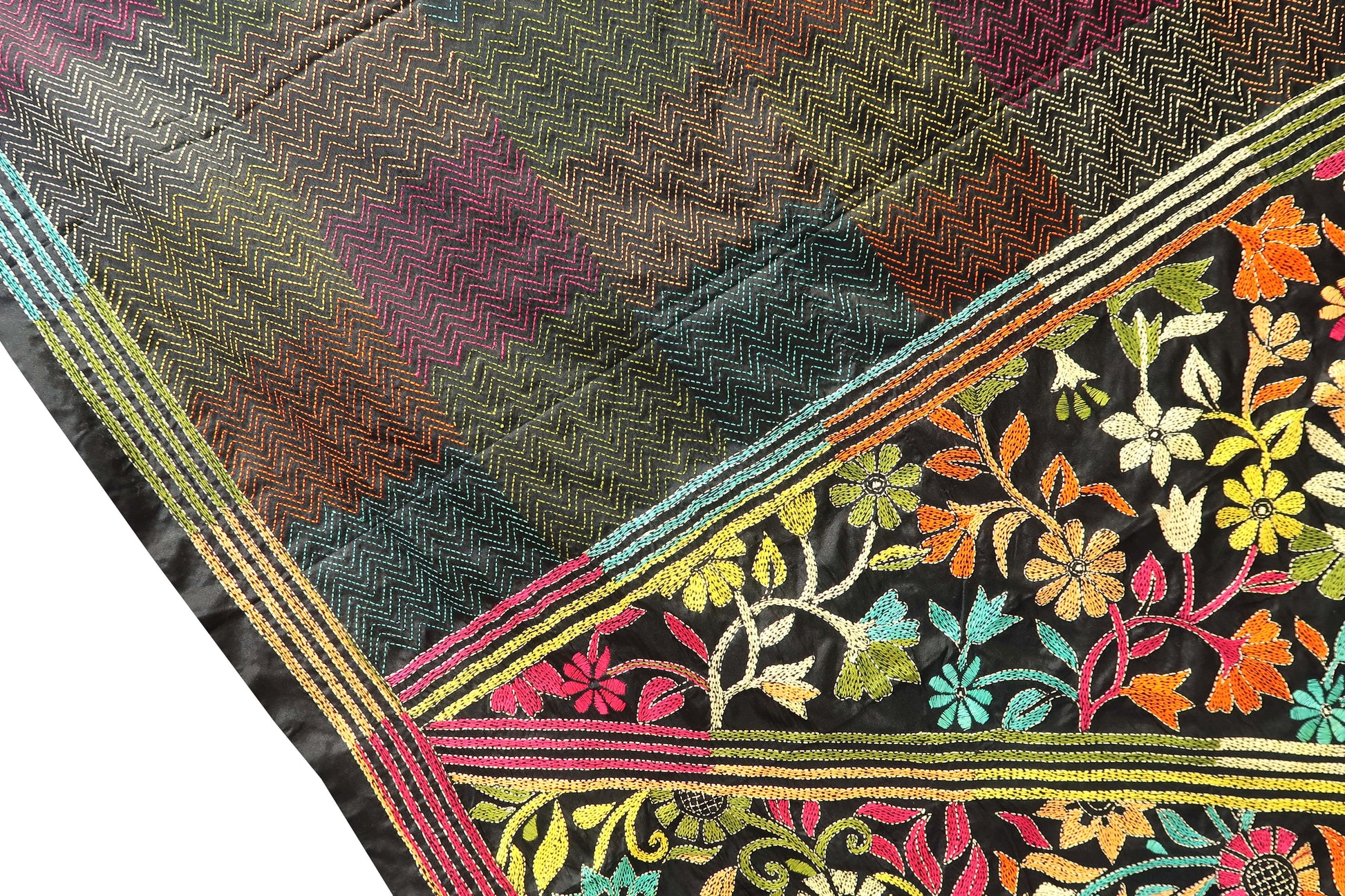 Black Katha Saree with Multicolour Floral Border