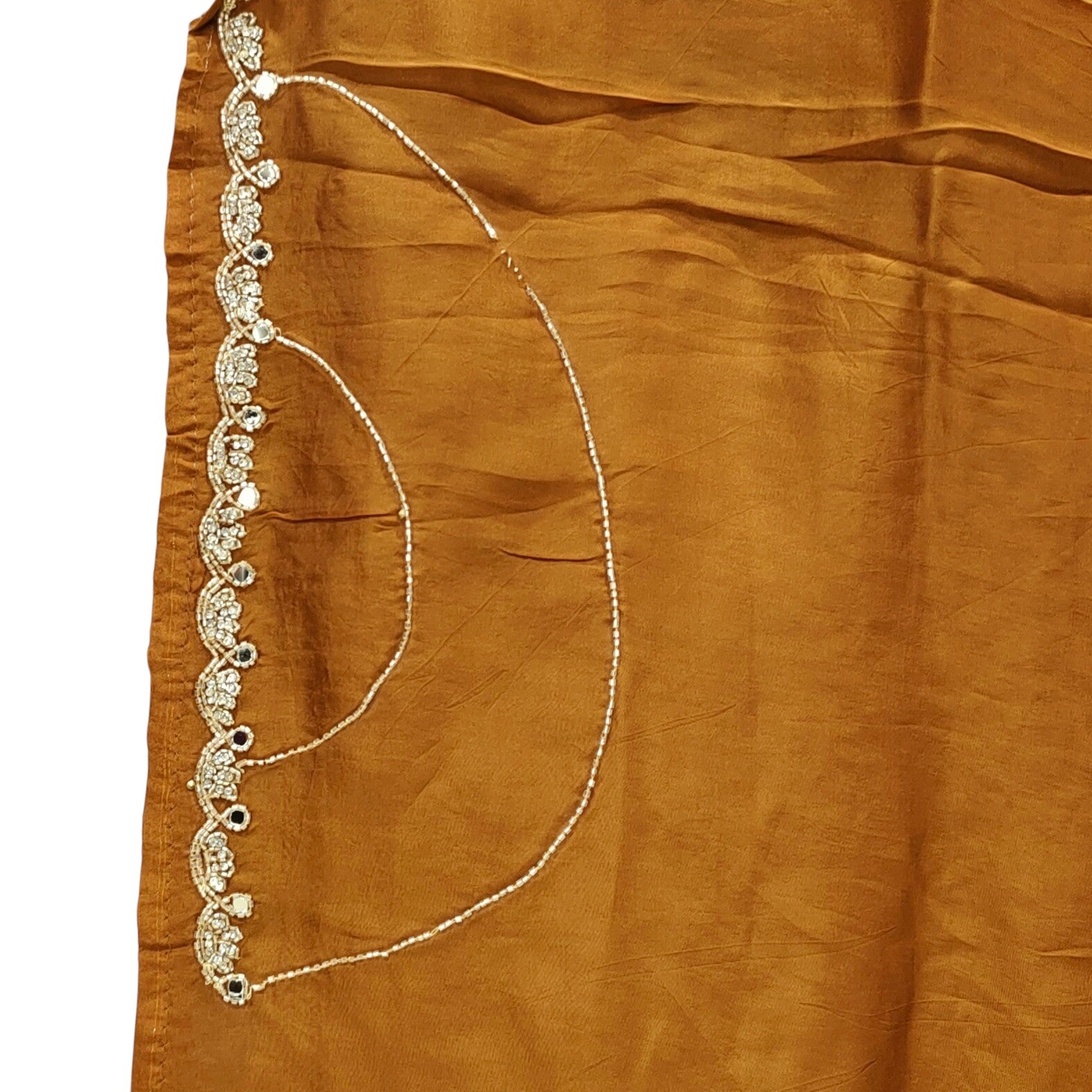 Step into effortless glamour with our Designer Bollywood-Inspired Partywear Saree, crafted to elevate your look with timeless elegance. Made from luxurious Chinon fabric, this saree drapes beautifully, offering a soft, body-hugging fall that enhances every silhouette with grace and ease.The highlight of this masterpiece is its rich Zardozi craftsmanship?a traditional hand-embroidery technique known for its opulent finish and intricate detailing. This exquisite work adds the perfect touch of sparkle and sophistication, giving the saree a premium, celebrity-style appeal.Lightweight, easy to drape, and exceptionally flattering, this saree is ideal for parties, wedding functions, festive occasions, and evening celebrations. Whether you're aiming for subtle elegance or star-studded glamour, this piece ensures you make an unforgettable impression.